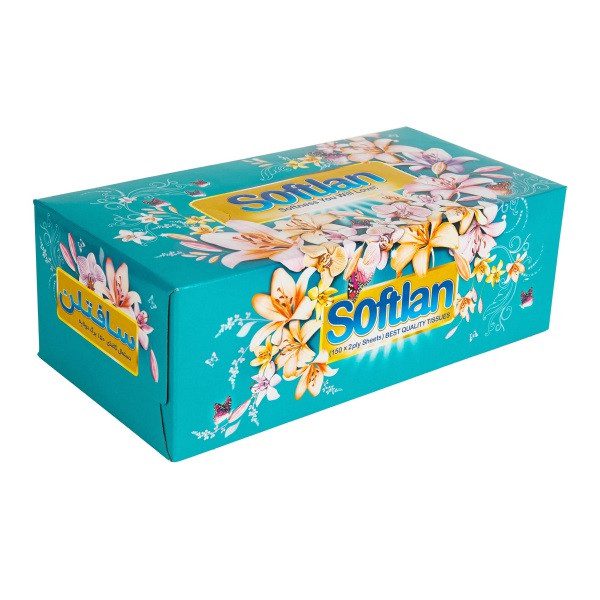 دستمال کاغذی ۱۵۰ برگ دولایه(۳۰۰برگ) طرح باغ بهشت سافتلن
