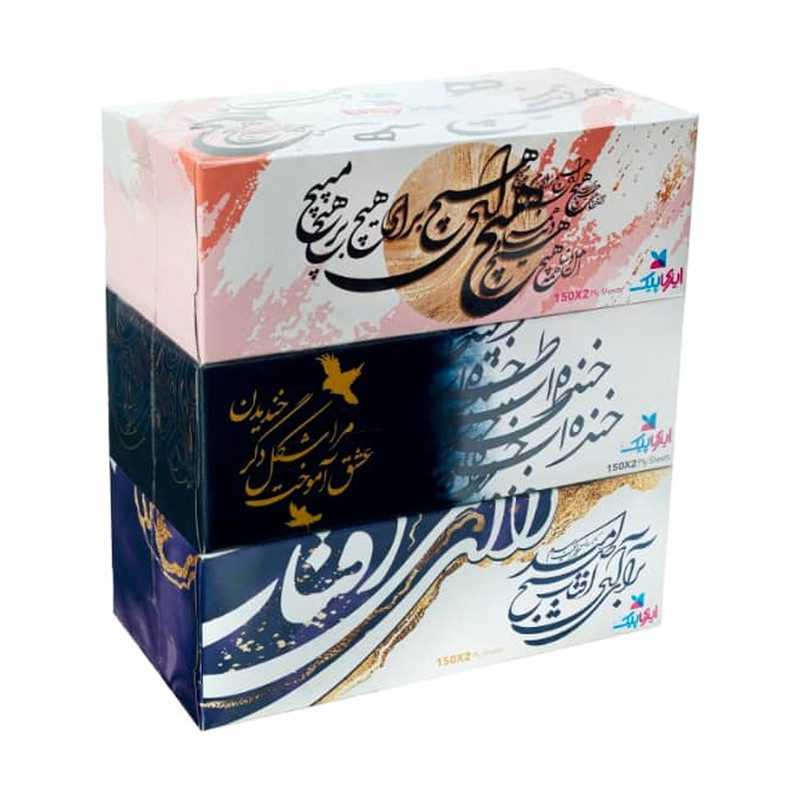 دستمال کاغذی ۱۵۰ برگ دولا essy peak,جعبه ای با طرح خوشنویسی